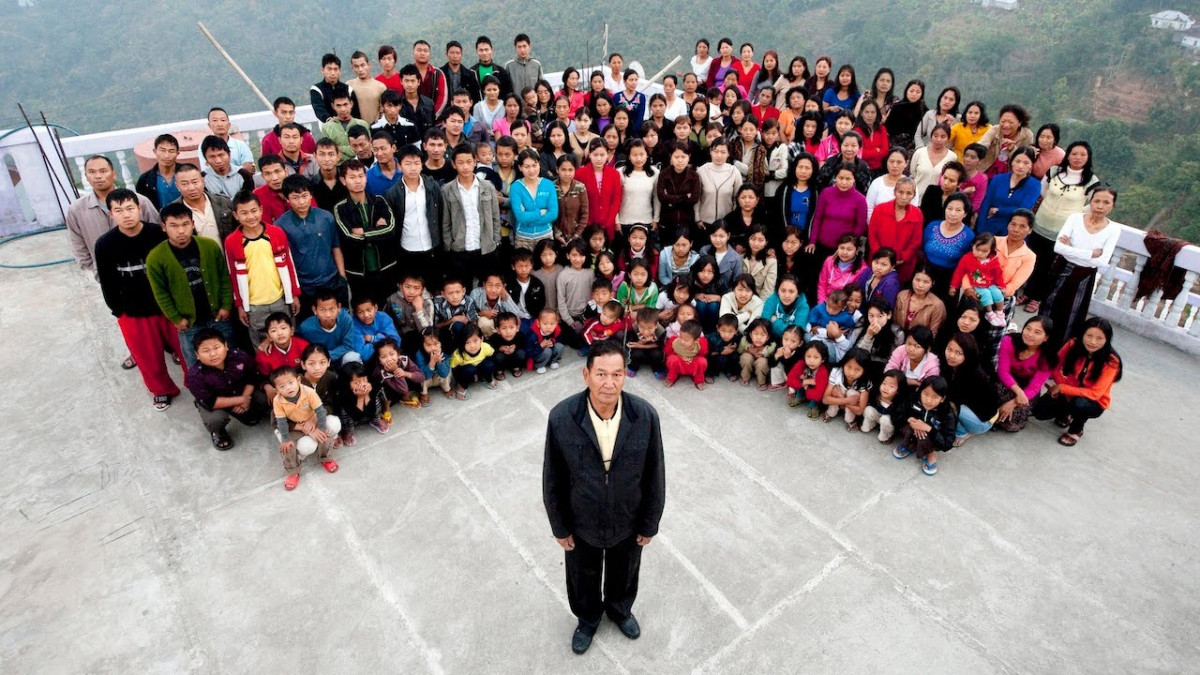 ޒިއޯނާ ޗަނާ - ދުނިޔޭގެ އެންމެ އާބާދީ ބޮޑު އާއިލާގެ ވެރިޔާ އޭނާގެ އާއިލާއެކު ފޮޓޯއަކަށް ހުއްޓިގެން
