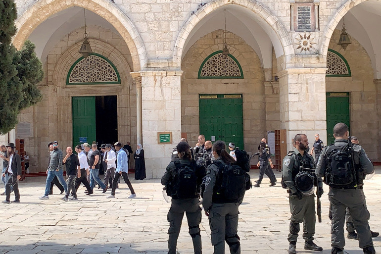 މިސްކިތުގެ ހަރިންމަތެރޭގައި ފަލަސްތީނު މީހުން ޖަމާވެ މުޒާހަރާއަށް ފެށުމުގެ ކުރިން އިސްރާއީލްގެ ސިފައިން ވަނީ އެތަނަށް ވަދެފައެވެ.