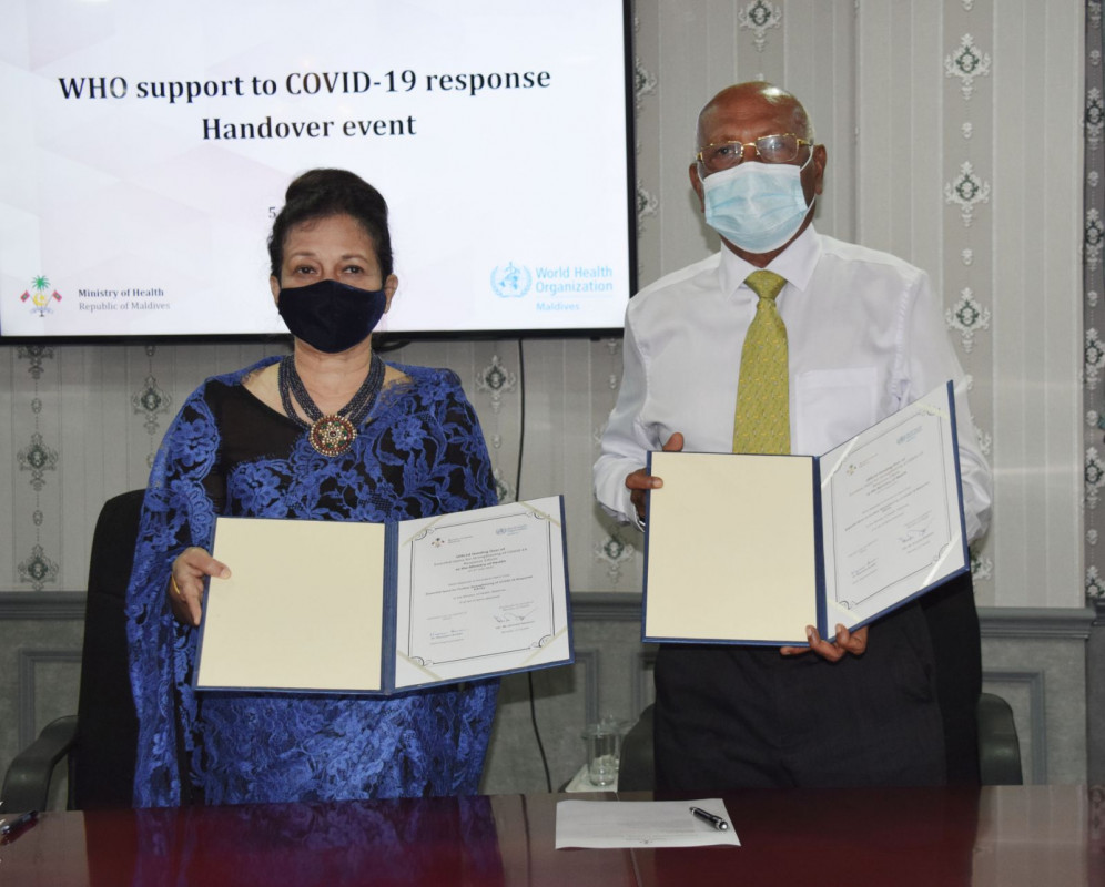 ދިވެހިރާއްޖެއިން ކޮވިޑް-19 އާއި ދެކޮޅަށް ކުރަމުންގެންދާ މަސައްކަތްތަކަށް އެހީތެރިވެ ސިއްހީ ދާއިރާ އިތުރަށް ހަރުދަނާ ކުރުމަށް ދުނިޔޭގެ ސިއްހަތު ޖަމިއްޔާއިން ދިވެހިރާއްޖެއަށް ބައެއް ތަކެތި ރަސްމީކޮށް ހަވާލުކޮށްފިއެވެ.