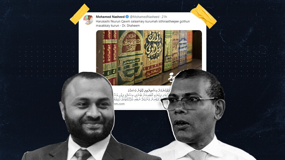 ޑރ. މުހައްމަދު ޝަހީމް އަލީ ސައީދު ވިދާޅުވެ ލިޔުއްވި ކޮލަމް ކުރީގެ ރައީސް، ރައީސް މުހައްމަދު ނަޝީދު ވަނީ ޓްވިޓަރގައި ހިއްސާ ކުރައްވާފައި