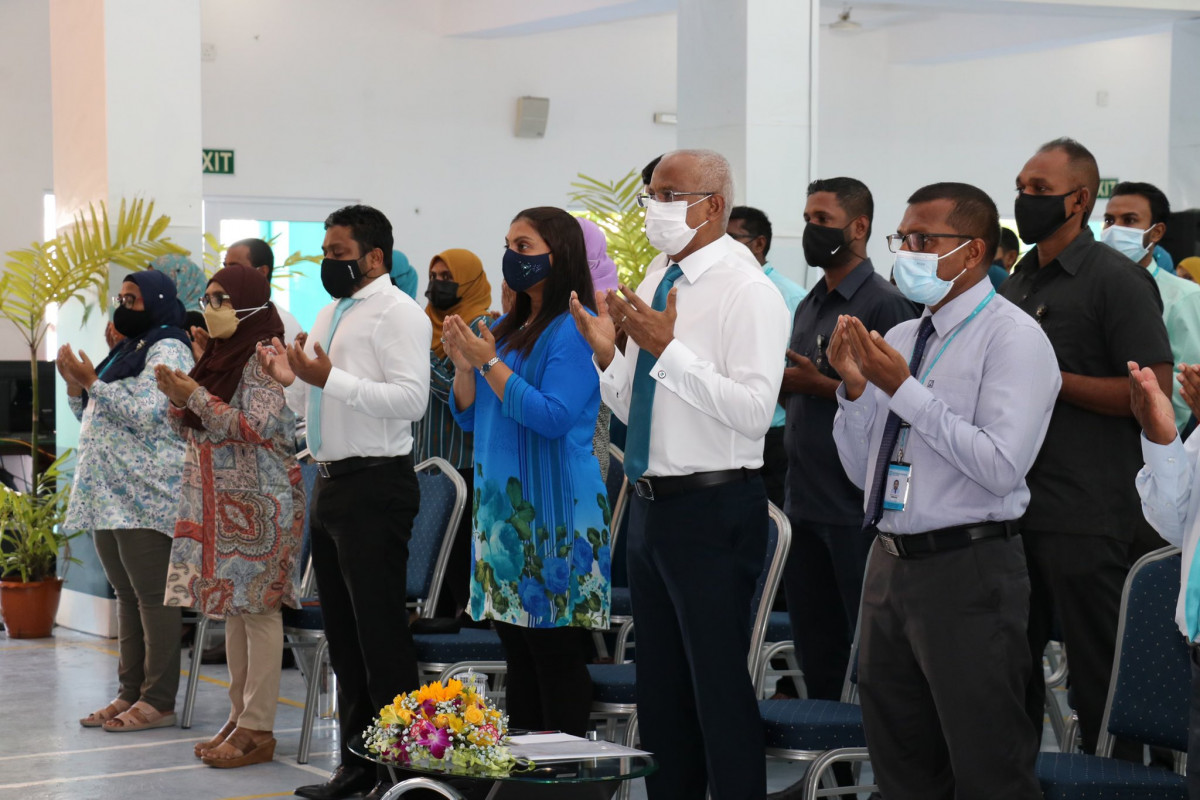 ދިރާސީ އައު އަހަރު ފެށުމުގެ ރަސްމިއްޔާތުގައި ރައީސުލްޖުމްހޫރިއްޔާ އިބްރާހިމް މުޙައްމަދު ޞާލިޙާއި އެޑިއުކޭޝަން މިނިސްޓަރ އާއިޝަތު އަލީ ބައިވެރިވެވަޑައިގަންނަވަނީ