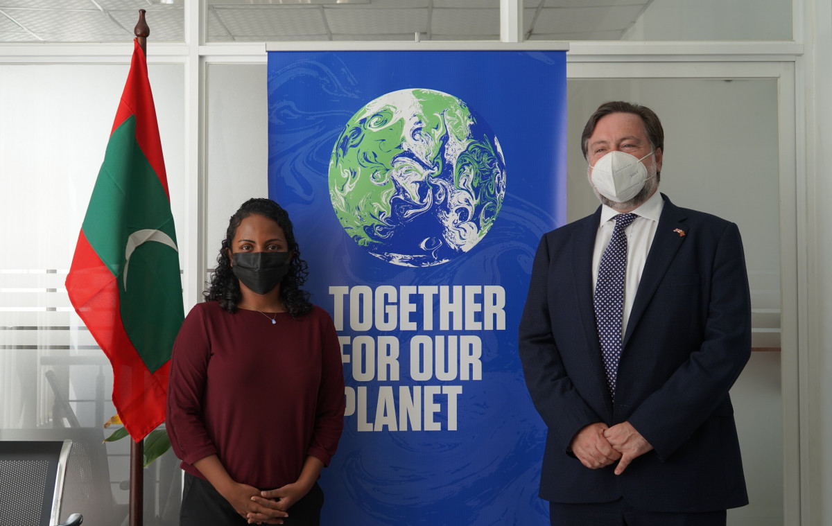 He also joined State Minister Khaleel at the Foreign Ministry where he shed light on the Maldives' climate ambitions for COP26 as well as the bilateral and multilateral cooperation to achieve the island nation’s Net Zero 2030 target.