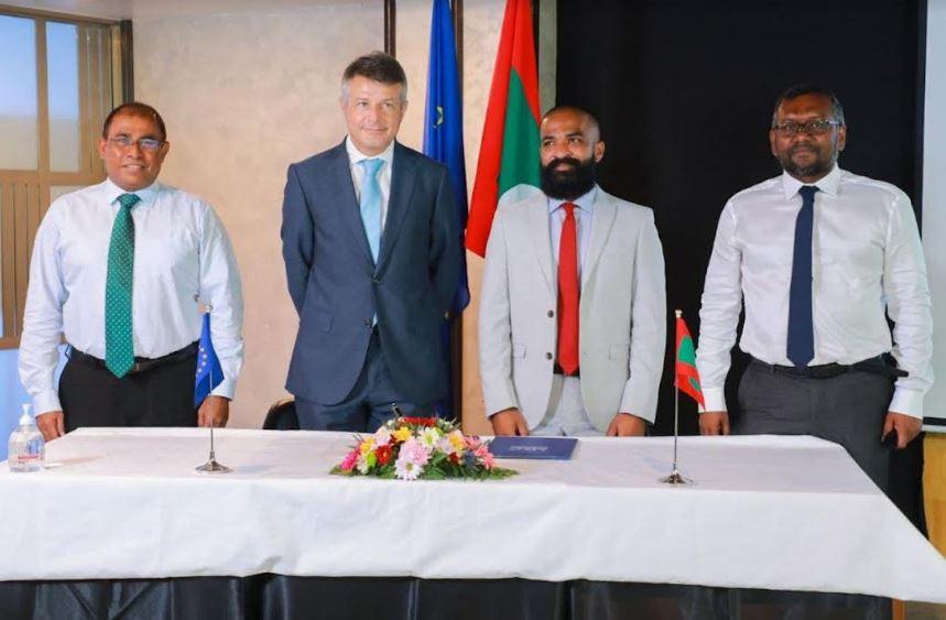 އަންގާރަ ދުވަހުގެ މެންދުރުފަހު ބޭއްވި ހަފްލާގައި މި ޕްރޮޖެކްޓް އެގްރިމަންޓްގައި ސޮއި ކުރައްވާފައިވަނީ ޔޫރަޕިއަން ޔޫނިއަނުން ދިވެހިރާއްޖެއަށް ކަނޑައަޅުއްވާފައިވާ ސަފީރު ހިޒް އެކްސެލެންސީ ޑެނިސް ޗައިބީ އަދި މޯލްޑިވްސް ފަންޑް މެނޭޖްމަންޓް ކޯޕަރޭޝަންގެ މެނޭޖިންގ ޑިރެކްޓަރ ޙަސަން މަނިކެވެ.