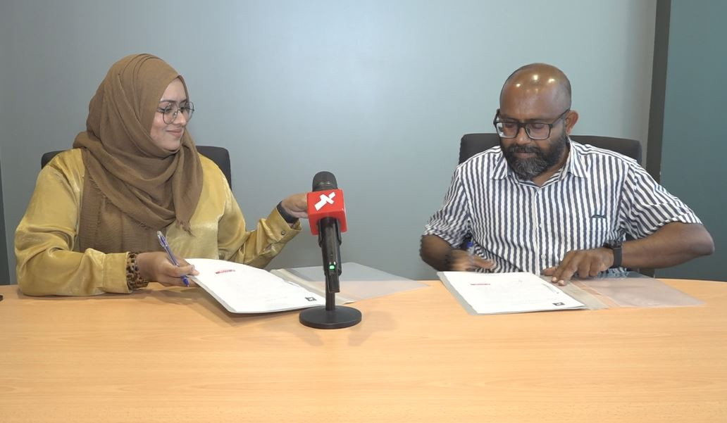 ރާއްޖެޓީވީގެ ފަރާތުން ސޮއިކުރެއްވީ ޑެޕިއުޓީ ޗީފް އޮޕަރޭޓިން އޮފިސަރ ނާޒްމީ ސައީދު