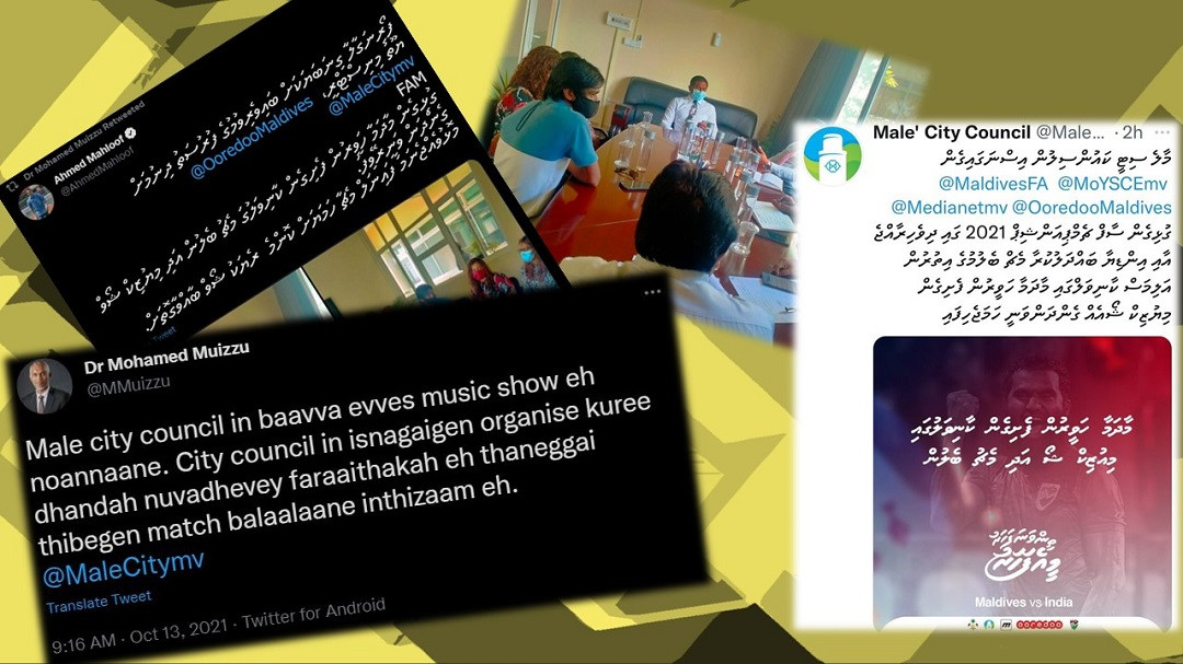 ނަމަވެސް މިއުޒިކް ޝޯއެއް ބާއްވާކަމަށް ބުނެ ޓްވީޓް ކުރި ހިސާބުން ބައެއް ފަރާތްތަކާއި ދީނީ އިލްމުވެރިންގެ ނުރުހުން އަމާޒުވި ހިސާބުން އެއީ ސިޓީ ކައުންސިލުން ކުރާ ކަމެއް ނޫންކަމަށް ދެއްކުމުގެ ގޮތުން ސިޓީ ކައުންސިލުން ވަނީ ޓްވީޓް ޑިލީޓްކޮށްފައެވެ. އަދި މޭޔަރ މުއިއްޒު ވަނީ މާލެ ސިޓީ ކައުންސިލުން ބާއްވާ އެއްވެސް މިއުޒިކު ޝޯއެއް ނޯންނާނެކަމަށް ވިދާޅުވެ ޓްވީޓް ކުރައްވާފައެވެ. އަދި ސިޓީ ކައުންސިލުން އިސްނަގައިގެން އޮގަނައިޒް ކުރީ ދަނޑަށް ނުވަދެވޭ ފަރާތްތަކަށް އެއްތަނެއްގައި ތިބެގެން މެޗުތައް ބެލޭނެ އިންތިޒާމް ކަމަށެވެ.