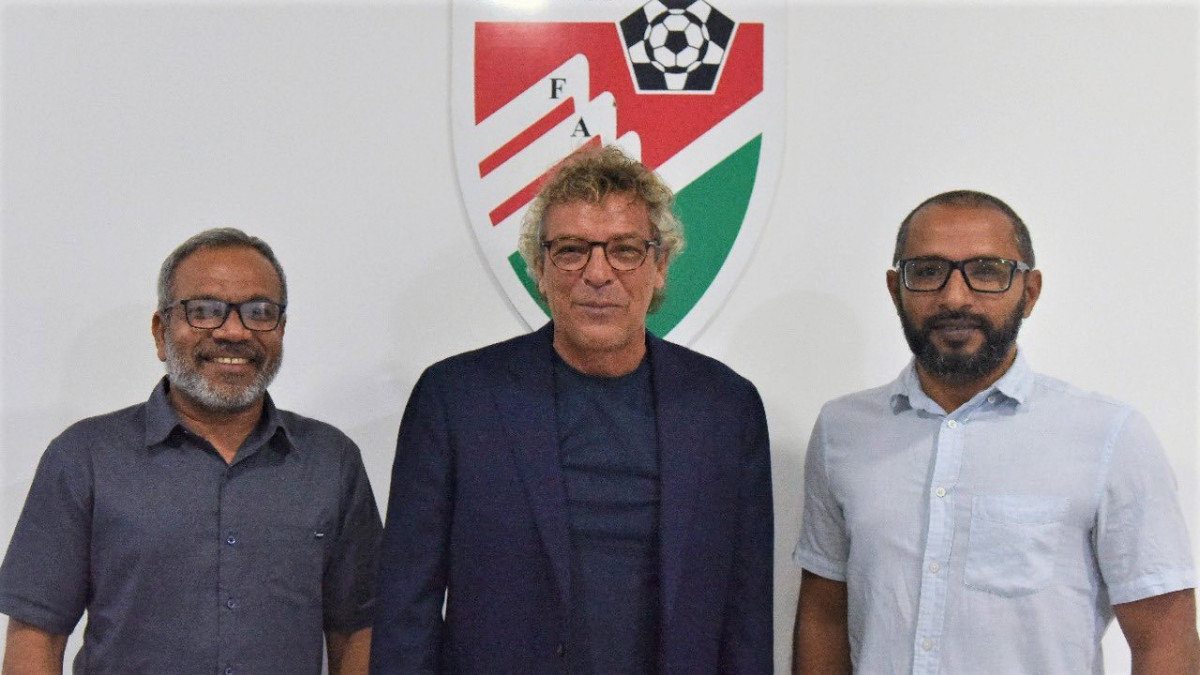 ގައުމީ ޓީމުގެ އައު ކޯޗު މޮރިއޭރޯއާއެކު އެފްއޭއެމުގެ ސީނިއާ ނައިބު ރައީސް އަލީ އުމަރާއި ޓެކްނިކަލް ޑިރެކްޓަރު ޑުންގާ