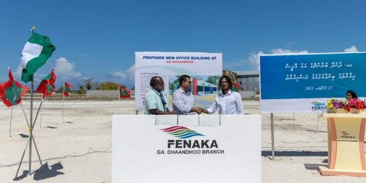 ގއ. ދާންދޫގައި އަލަށް އިމާރާތް ކުރާ ފެނަކަ އޮފީހުގެ ބިންގާ މިއަދު އަޅައިފިއެވެ. މި އިމާރާތުގެ ބިންގާ އެޅުއްވީ ފެނަކަ ކޯޕަރޭޝަން ލިމިޓެޑްގެ މެނޭޖިން ޑިރެކްޓަރ އަހުމަދު ސައީދުއާއި ދާންދޫ ދާއިރާގެ މެމްބަރު ޔައުގޫބު އަބްދުﷲއެވެ.