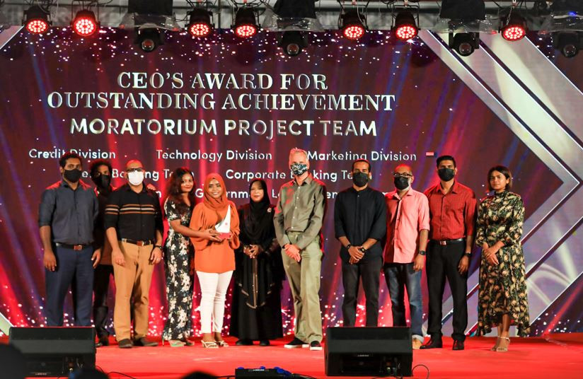 އަފްރާޙް އަޙްމަދު (ހެޑް އޮފް ބޭންކިންގ ސޮލިއުޝަންސް) އަދި މޮރޮޓޯރިއަމް ޕްރޮޖެކްޓް ޓީމް ވަނީ 2020 ވަަނަ އަހަރުގެ ސީއީއޯ އެވޯޑް ފޯރ އައުޓްސްޓޭންޑިންގ އެޗީވްމަންޓް އެވޯޑް ހޯދާފައެވެ. ކޮވިޑް-19ގެ ދުވަސްތަކުގައި މުވައްޒަފުން ކޮށްފައިވާ ބުރަ މަސައްކަތުގެ އަގުވަޒަން ކުރުމުގެ ގޮތުން ދެވުނު ފަޚުރުވެރި ރެކޮގްނިޝަން އެވޯޑް ބޭންކުގެ 17 ޓީމަކަށް ވަނީ ލިބިފައެވެ. މީގެ އިތުރުން ޙައްވާ ޝީނިއާޒް ޢަދުނާން (ހެޑް އޮފް ލޯން ސަރވިސަސް) ވަނީ 2019 ވަނަ އަހަރުގެ އެމްޕްލޯއީ އޮފް ދަ އިޔަރ އެވޯޑް ހޯދާފައެވެ.