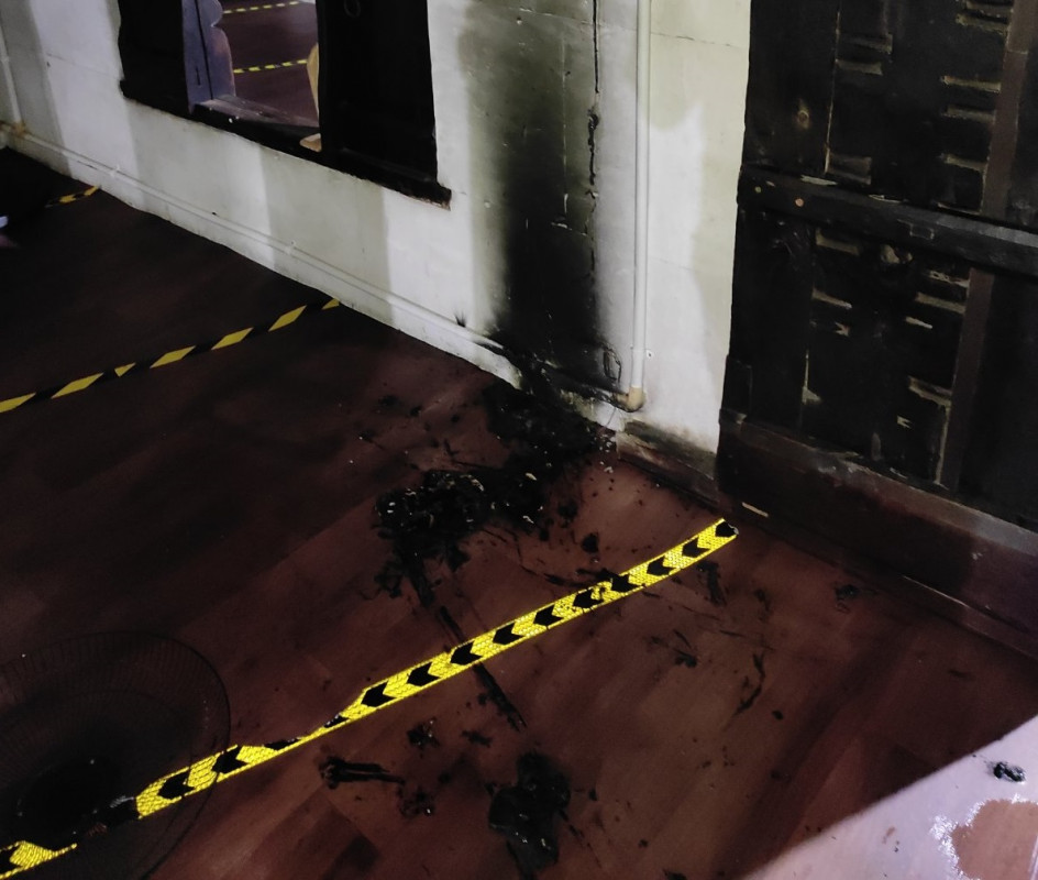 އަލިފާނުގެ ސަބަބުން މިސްކިތުގެ ލަކުޑީގެ ބައިތަކުގައި އަލިފާން ހިފާފައިވާ ކަމަށާއި, ބައެއް ލަކުޑިތައް ދެއްޔަށް ވާން ކައިރިވެފައި ހިސާބުގައި ހުރިކަމަށް ޠާރިޤް ވިދާޅުވިއެވެ.