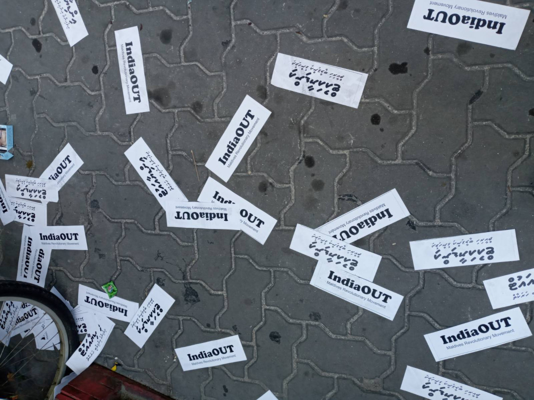 ފުރަމާލޭގެ މަގުތަކުގައި " އިންޑިއާ އައުޓް" ލިޔެފައިވާ ކަރުދާސްތައް އަޅާފައި
