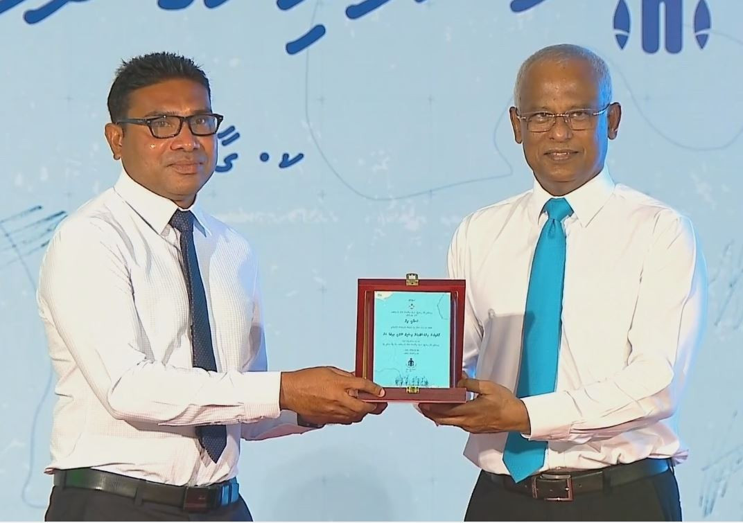 ރާއްޖޭގައި ފާހަގަކުރާ 41 ވަނަ މަސްވެރިންގެ ދުވަހުގެ ރަސްމީ ޖަލްސާގައި މި ފަރާތްތަކަށް އިނާމު ހަވާލުކޮށްދެއްވީ ރައީސުލްޖުމްހޫރިއްޔާ އިބްރާހިމް މުހައްމަދު ޞާލިހެވެ.