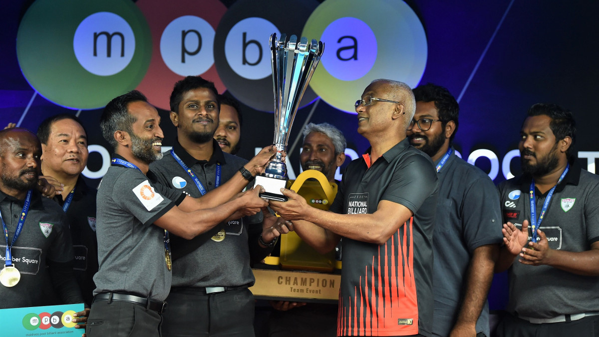 ރާއްޖޭގައި ފުރަތަމަ ފަހަރަށް ބޭއްވި ގައުމީ ބިލިއާޑް މުބާރާތުގެ ޓީމު އިވެންޓްގެ ޗެމްޕިއަންކަން ހޯދައި ރައީސުލްޖުމްހޫރިއްޔާގެ ވާދައިގެ ތަށި ކުލަބު އީގަލްސް އުފުލާލައިފިއެވެ.