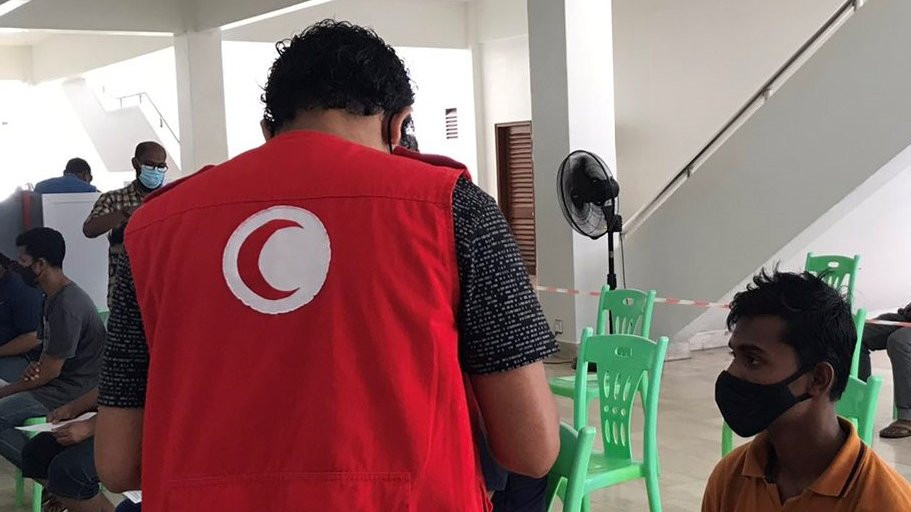 ދިވެހި ރެޑްކްރެސެންޓްގެ ދަރުމަވެރިޔަކު މަސައްކަތުގައި