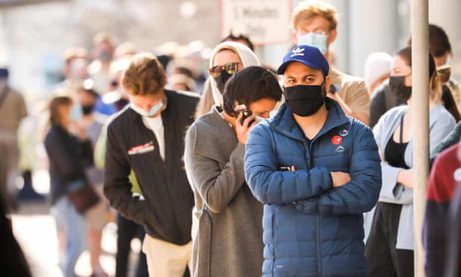 ސައުތު އެފްރިކާގެ ކޭޕް ޓައުންގައި ވެކްސިން ކިއޫގައި ތިބި ބައެއް