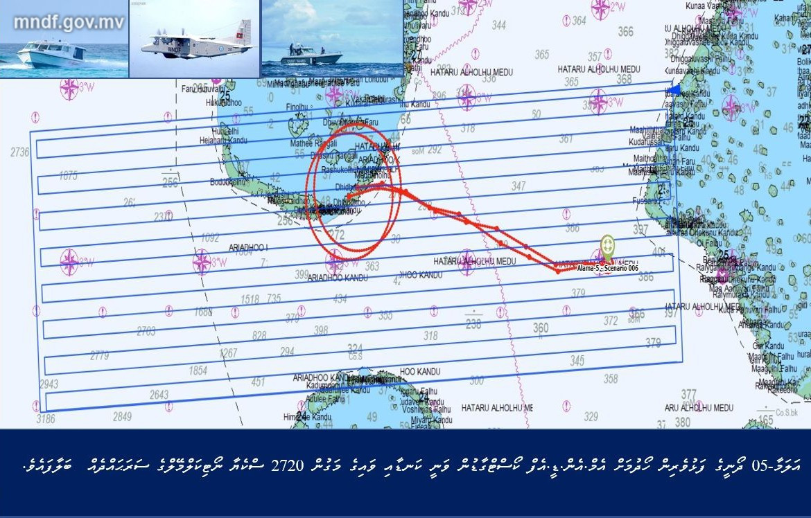 އަލަމާ-5 ދޯނީގެ ފަޅުވެރިން ހޯދުމަށް މިހާތަނަށް ކަނޑާއި ވައިގެ މަގުން 2720 ސްކޮޔަރ ނޯޓިކަލްމޭލްގެ ސަރަހައްދެއް ބަލާފައިވާ ކަމަށާއި، އަދިވެސް ނުފެންނަ ކަމަށް އެމްއެންޑީއެފުން ބުނެފިއެވެ.