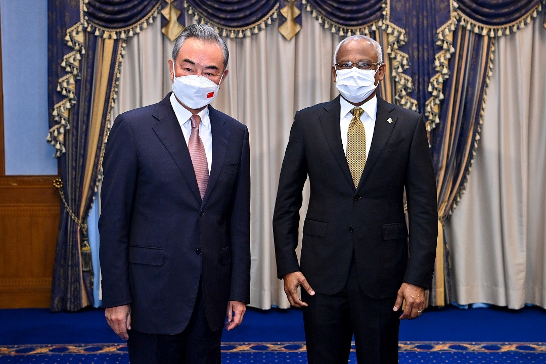 ޗައިނާގެ ސްޓޭޓް ކައުންސިލަރ އަދި މިނިސްޓަރ އޮފް ފޮރިން އެފެއާޒް، ވަންގް ޔީ، ރައީސުލްޖުމްހޫރިއްޔާ އިބްރާހީމް މުހައްމަދު ސާލިހުގެ އަރިހަށް އިހުތިރާމުގެ ޒިޔާރަތެއް ކުރައްވައިފިއެވެ.