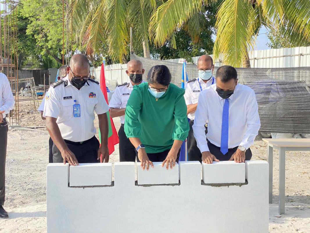 މަރަދޫ ޕާކް ސަރަހައްދުގައި ބޭއްވި ރަސްމިއްޔާތުގައި އިމާރާތުގެ ބިންގާ އަޅުއްވައިދެއްވީ ޑިފެންސް މިނިސްޓަރު މާރިޔާ އަހްމަދު ދީދީ އާއި ކޮމިޝަނަރު ޖެނެރަލް އޮފް ކަސްޓަމްސް އަބްދުﷲ ޝަރީފް އަދި އައްޑޫ ސިޓީގެ މޭޔަރު އަލީ ނިޒާރުއެވެ.