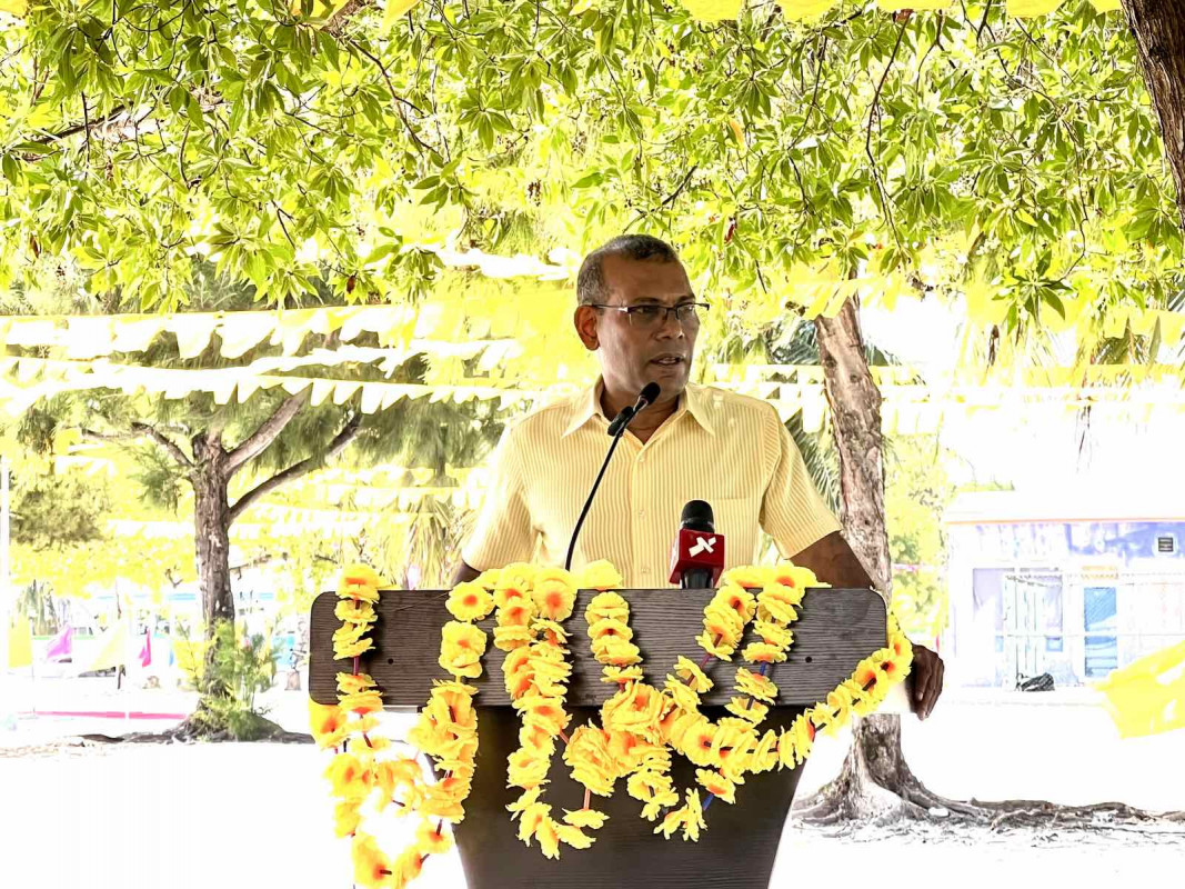 ށ މަރޮށީގައި އެމްޑީޕީން ބޭއްވި ކެމްޕޭން ބައްދަލުވުމުގައި ރައީސް ނަޝީދު ވާހަކަފުޅުދައްކަވަނީ