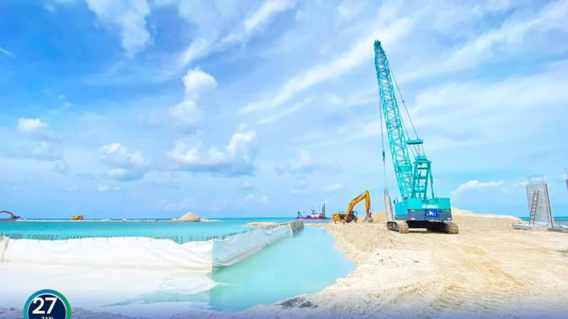 The Maldives Transport and Contracting Company (MTCC) revealed that the work on the design and build of the harbor construction is well underway in Hulhudhoo island.