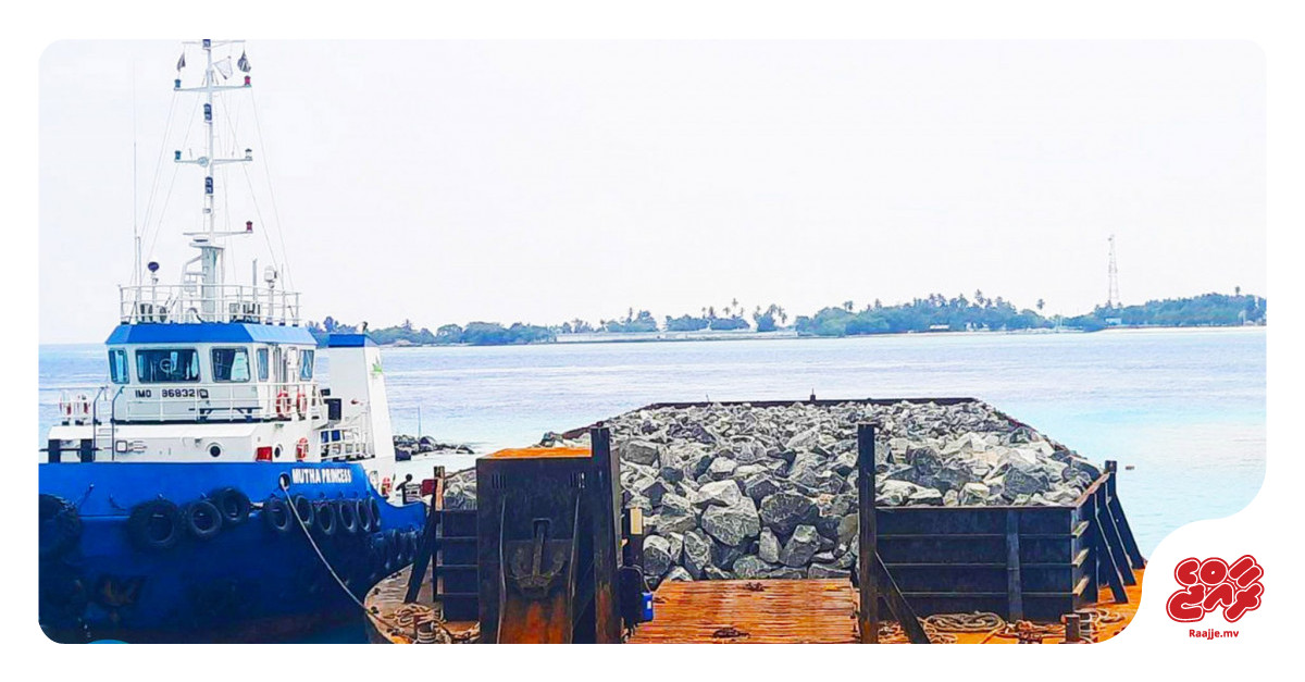 According to MTCC, they have now delivered the second shipment of rock boulders needed to construct the breakwater around Girifushi island’s harbor.
