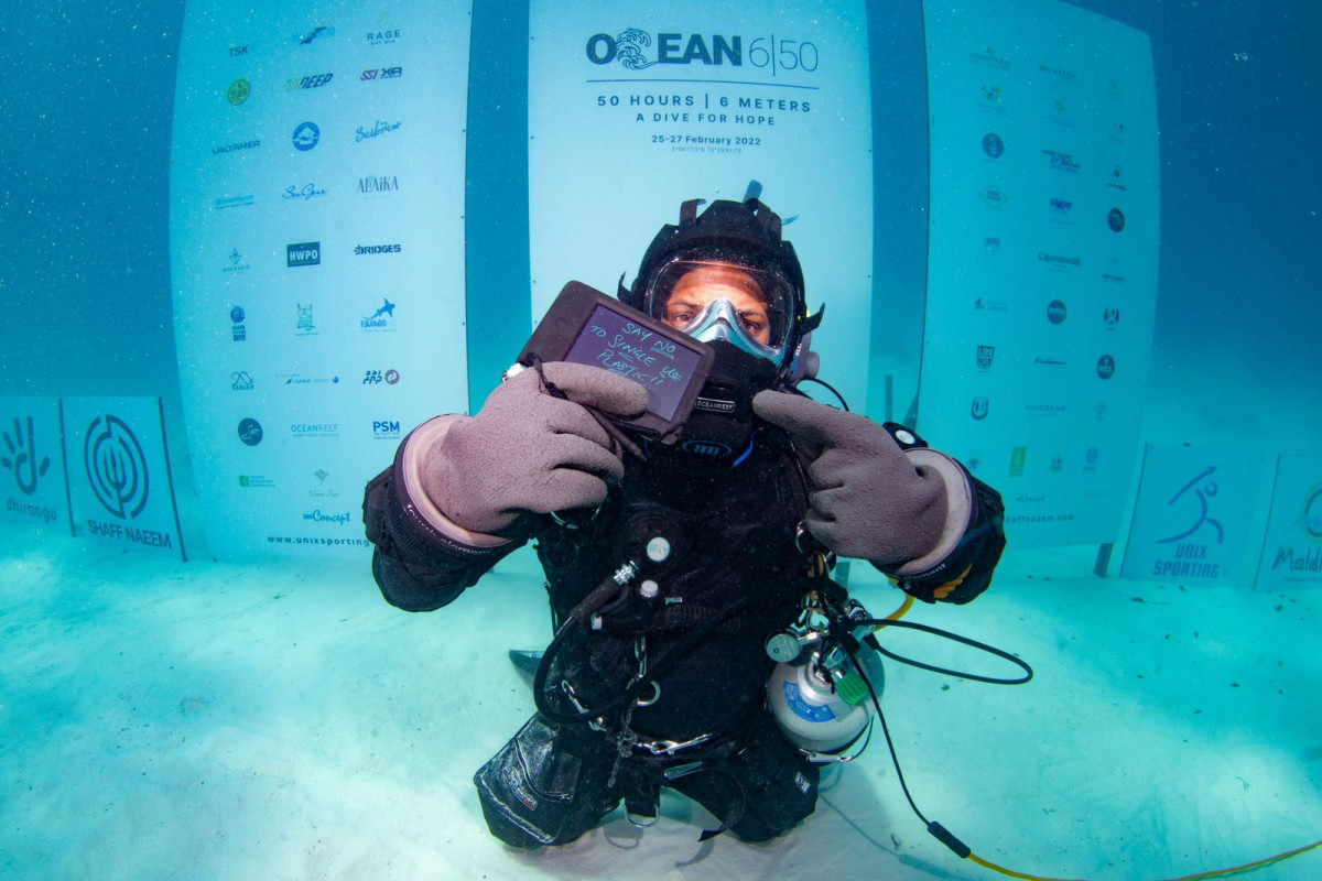 ކަނޑު އަޑީގައި 50 ގަޑިއިރު މީހަކު ހޭދަކުރާ ވާހަކަ ބުނުމަކީ އެއްބަޔަކަށް ގަބޫލުކުރަން ދަތިކަމަކަށް ވެދާނެއެވެ. ނަމަވެސް މިއަދު ރާއްޖޭގައިވެސް އެކަން މިވަނީ ހަގީގަތަކަށް ހަދާފައެވެ. ރާއްޖޭގެ ފަތުރުވެރިކަމަށް އަދި ޑައިވިންގ އިންޑަސްޓްރީއަށް 50 އަހަރު ފުރުމުގެ މުނާސަބަތާ ގުޅުވައިގެން, ރާއްޖޭގެ ކުޅަދާނަ ޑައިވަރު ޝަފްރާޒް ނައީމް ވަނީ 50 ގަޑިއިރު މޫދުގެ އަޑީގައި ހޭދަކޮށްފައެވެ. ޔުނިއެކްސް ސްޕޯޓިންގއިން އިންތިޒާމުކޮށްގެން ކުރިއަށް ގެންދިޔަ މި ހަރަކާތަކީ, ފަރުތަކާއި މޫދާއި، އެތަންތަނުގެ ދިރުންތައް ރައްކާތެރިކަމާއެކު ކުރިއަށް އޮތް ޖީލާ ހަމައަށް ގެންދިއުމަށްޓަކައި ވަރުގަދަ މެސެޖެއް ފޯރުކޮށްދިނުމަށް ކުރިއަށްގެންދިޔަ ހަރަކާތެކެވެ.