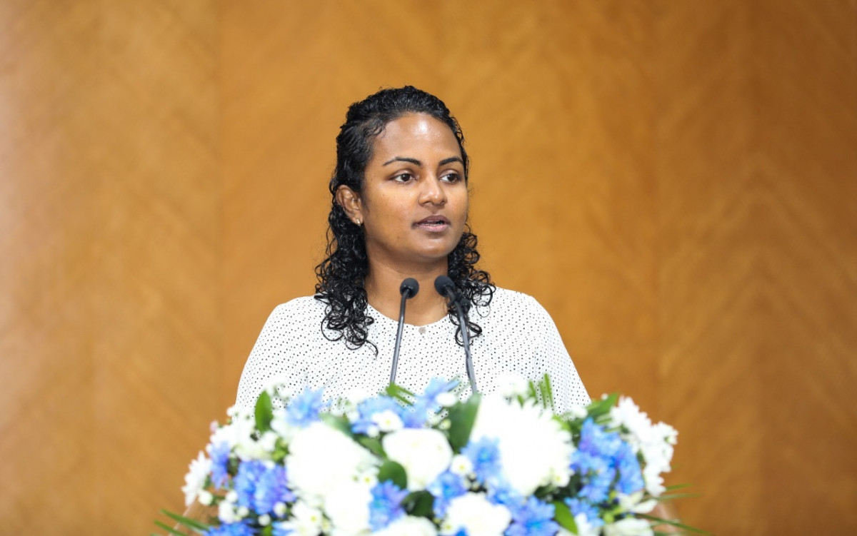 ސްޓެލްކޯގެ "ޕަވަރހައުސް މެނޭޖަރޒް ޑިވެލޮޕްމަންޓް ޕްރޮގްރާމް 2022" އިފްތިތާހުކުރުމުގެ ރަސްމިއްޔާތުގައި މިނިސްޓަރު ޝައުނާ ވާހަކަދައްކަވަނީ