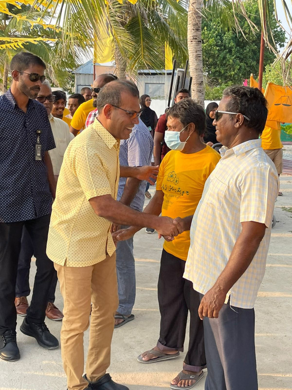 ރައީސް ޔާމިން އަދި ޕީޕީއެމްގެ ވިސްނުކަމީ ކުރެންދޫފަދަ ރަށްތައް އުވާލައި، މާލެ ކައިރީގައި ތަނެއް ހިއްކާފައި އެތަނަށް މީހުން ގެންދިޔުން ކަމަށާ، އެހެންކަމުން ތަރައްގީއަށް ވިސްނުމެއް ގެނެވޭނީވެސް ރަށްތައް އޮތުމަށް ވިސްނުން ގެންގުޅުއްވައިގެން ކަމަށް ރައީސް ނަޝީދު ވިދާޅުވިއެވެ.