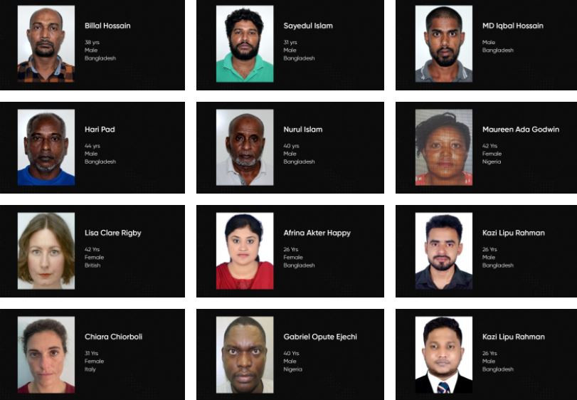 އިމިގްރޭޝަނުން ކޮށްފައިވާ އިއުލާންގައި ބުނެފައިވަނީ، މި މީހުންނަކީ އިމިގްރޭޝަނުން ބަލަމުން އަންނަ ތަފަތު 45 މައްސަލައަކާއި ގުޅިގެން ހޯދަމުން އަންނަ 45 މީހެއް ކަމަށެވެ. އެހެންނަމަވެސް މައްސަލައިގެ ތަފްސީލް އަދި ހިއްސަ ކުރެވެން ނެތް ކަމަށް އިމިގްރޭޝަނުން ބުނެއެވެ. ފޮޓޯއާއެކު އާންމުކޮށް އިއުލަން ކޮށްފައިވާ ލިިސްޓްގައި ހިމެނެނީ 8 އަންހެނަކާއި 37 ފިރިހެނެކެވެ.