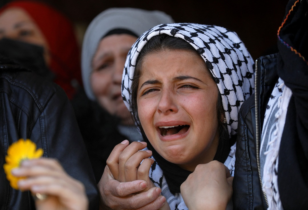 އިސްރާއިލްގެ ހަމާލަތެއްކައި ޝަހީދުވި މީހެއްގެ އާއިލާ މީހެއް، އޭނާގެ ޖަނާޒާގައި