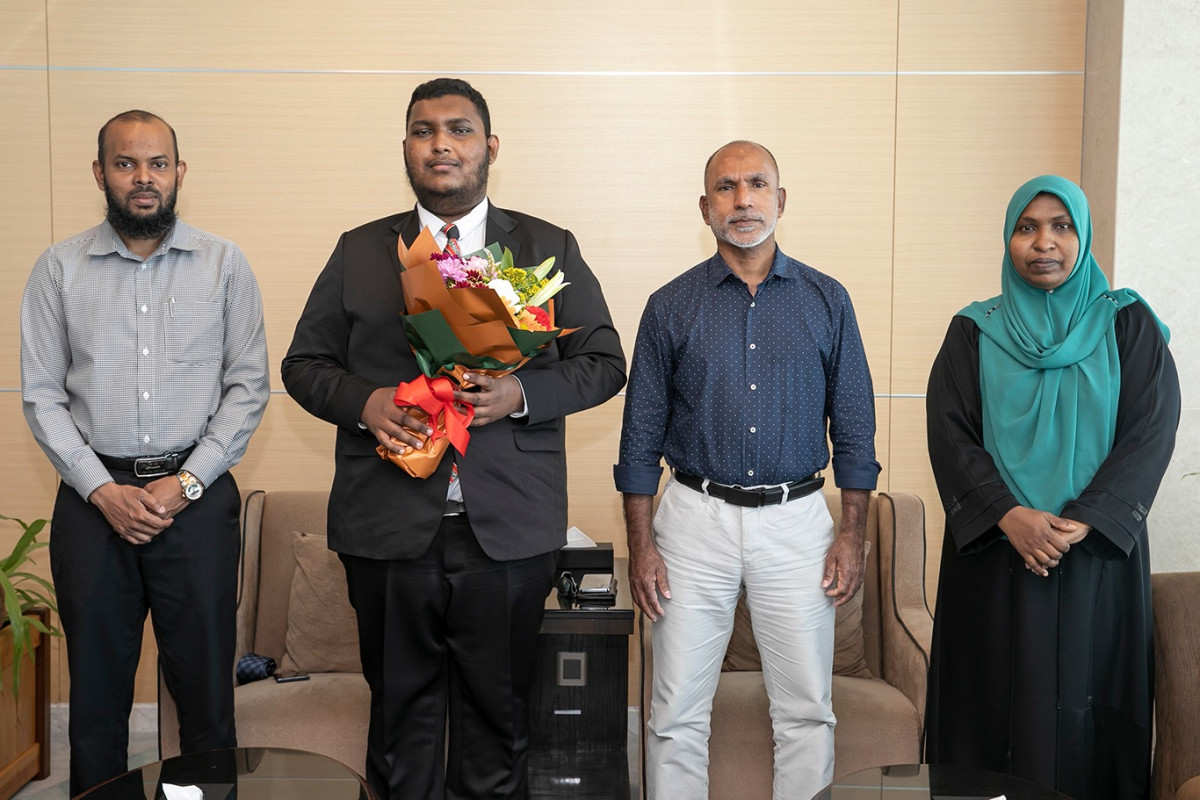 މިނިސްޓަރ އޮފް އިސްލާމިކް އެފެއާޒް، ޑރ. އަޙްމަދު ޒާހިރު އަލީ، އަލްޙާފިޡް އަޙްމަދު ނަބީޙް އަށް މަރުޙަބާ ވިދާޅުވެ، ހިތްވަރުދެއްވައިފިއެވެ.
