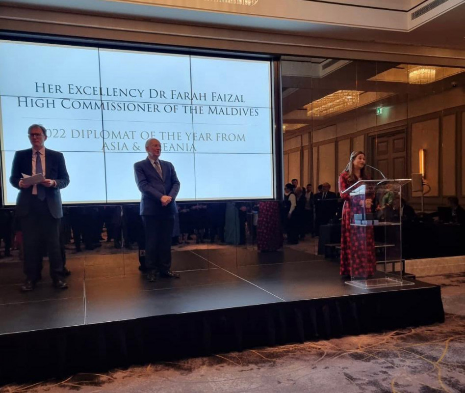 ލަންޑަންގައި ހުންނަ އޭޝިއާ އަދި އޯޝަނިއާ ސަރަހައްދުގެ އެންމެ ފާހަގަކޮށްލެވޭ ޑިޕްލޮމެޓަކަށް ޑރ.ފަރަހްނާޒް ފައިސަލް ހޮވިވަޑައިގެންފިއެވެ.