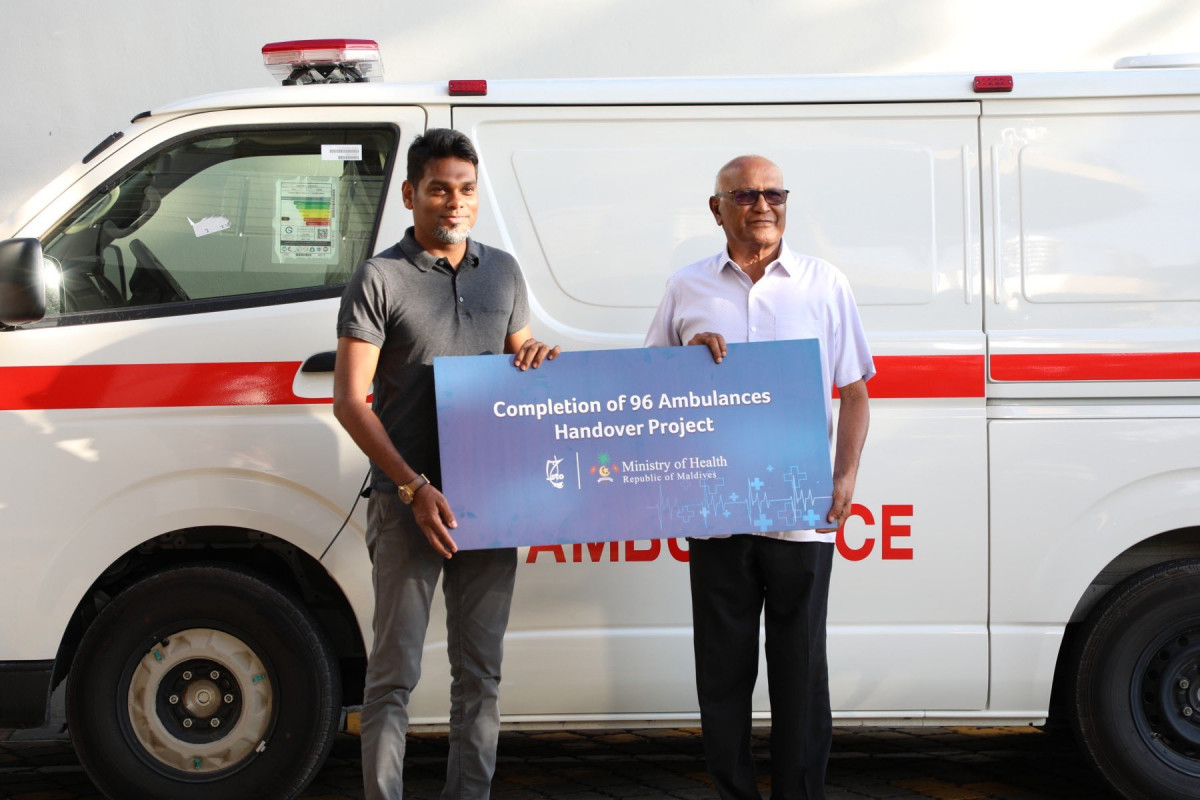 ރާއްޖޭގެ އެކި ރަށްރަށުގެ ސިއްހީ ނިޒާމަށް ބޭނުންވާ 96 އެމްބިއުލާންސް ސަޕްލައިކުރުމަށްޓަކައި މިނިސްޓްރީ އޮފް ހެލްތުން އެސްޓީއޯއާ ހަވާލުކުރި ޕްރޮޖެކްޓް ނިންމައި، 96 ރަށުގެ އެމްބިއުލާންސް ހެލްތު މިނިސްޓްރީއާ ހަވާލުކޮށްފިއެވެ.