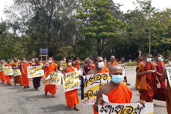 ލަންކާގެ ސަރުކާރާ ދެކޮޅަށް ކުރާ މުޒާހަރާތަކުގައި އެގައުމުގެ ބުދިސްޓުންވެސް ބައިވެރިވަމުންދާއިރު، އަންގާރަ ދުވަހު މުޒާހަރާކުރި ބުދިސްޓުންތަކެއް ވަނީ ފުލުހުންގެ ބެރިކޭޑުތައް ދުރަށް ޖައްސައި ރައީސް ގަނޑުވަރު ކުރިމަތީގައި މުޒާހަރާކޮށްފައެވެ.