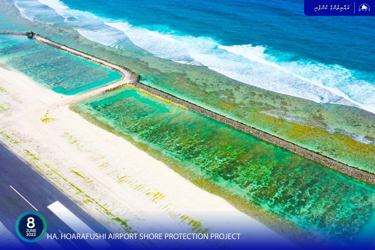 The Maldives Transport and Contracting Company (MTCC) revealed that work on the Hoarafushi Airport shore protection project has reached overall 55 percent progress and is well underway.