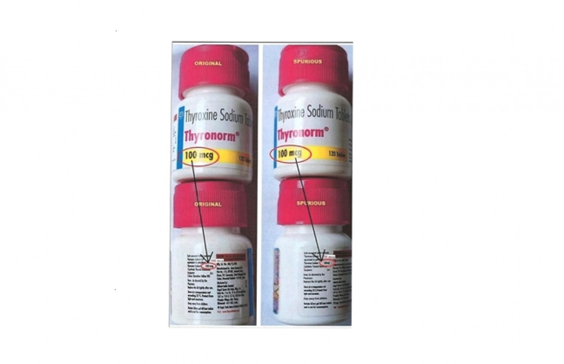 އެމްއެފްޑީއޭ އިން އަންގާރަ ދުވަހު ނެރުނު ނޫސްބަޔާނެއްގައި ބުނީ އިންޑިއާގެ ޖެނެރިކްސް އެލްއެލްޓީ ކުންފުނިން އުފައްދާ، ތައިރޮއިޑް ބައްޔަށް ބޭނުންކުރާ ބޭހެއް ކަމަށްވާ "ތައިރޮނޯރމް 100އެމްސީޖީ" ގެ ފޭކް ބޭސްތަކެއް ފެނިފައިވާ ކަމަށް އެ ގައުމުގެ ތެލަންގަނާ ޑްރަގްސް ކޮންޓްރޯލް އެޑްމިނިސްޓްރޭޝަނުން އަންގަފާއިވާ ކަމަށެވެ.
