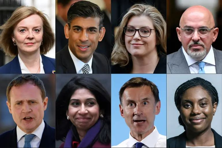 ކޮންޒަވޭޓިވް ޕާޓީގެ 1922 ކޮމިޓީގެ ޗެއަރމަން ގްރަހަމް ބްރެޑީ އިއުލާން ކުރެއްވި ގޮތުގައި ބޮޑުވަޒީރުގެ މަގާމަށް ވާދަ ކުރައްވާނީ އެ ޤައުމުގެ ކުރީގެ ފިނޭންސް މިނިސްޓަރު ރިޝީ ސުނާކް އާއި ފޮރިން ސެކްރެޓަރީ، މިނިސްޓަރ ފޯރ ވުމަން އެންޑް އިކުއަލިޓީ، ލިޒް ޓްރޫސް އާއި މަޖިލިސް މެމްބަރު ޓޮމް ޓަގެންދަޓް އާއި މަޖިލިސް މެމްބަރު ކެމީ ބެޑެނޮކް އާއި ސްޓޭޓް މިނިސްޓަރ ޕެނީ މޯރޑޮންޓް އާއި މަޖިލިސް މެމްބަރު ޖެރެމީ ހަންޓް އާއި ޗާންސެލަރ ދީމް ޒަހާވީ އަދި އެޓަރނީ ޖެނެރަލް ސުއެލާ ބްރެވަމަން އެވެ.