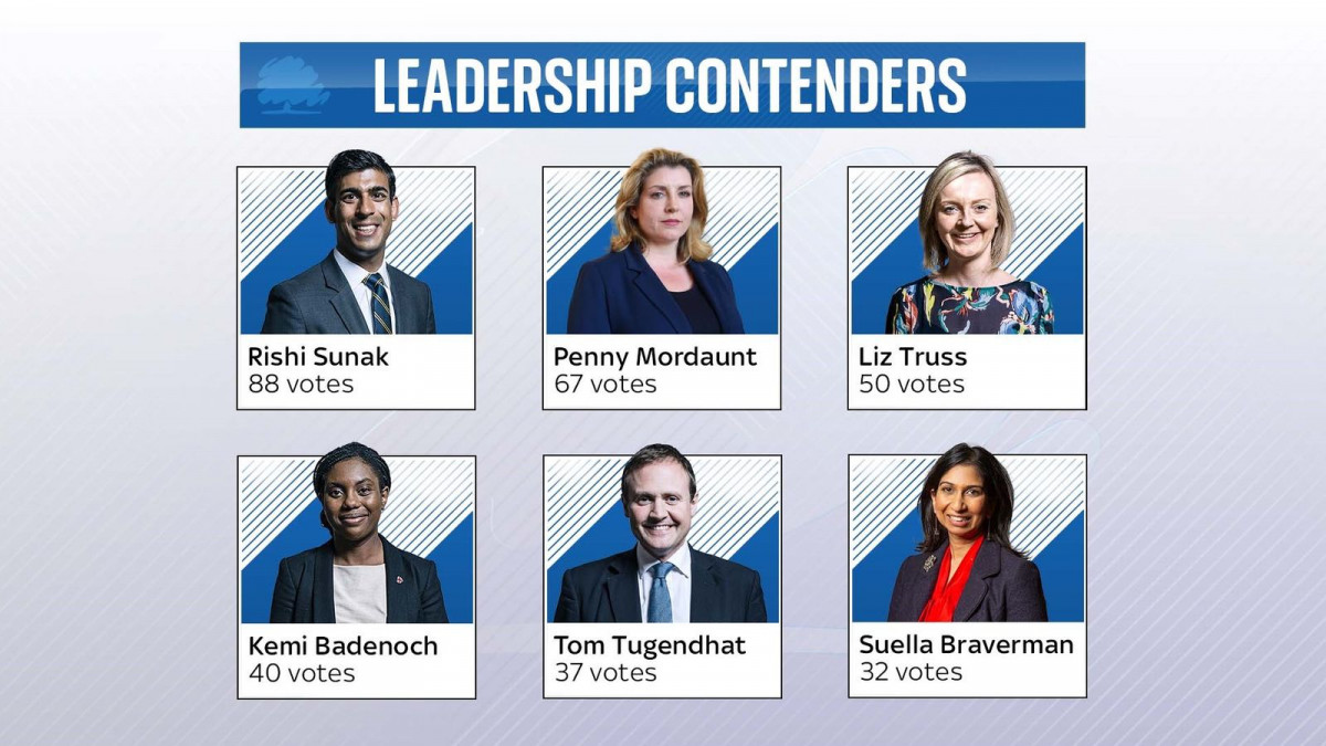 ކޮންޒަވޭޓިވް ޕާޓީގެ މެމްބަރުންގެ މެދުގައި ނެގި ވޯޓުގައި އެންމެ ކުރީގައި އުޅުއްވަނީ ރިޝީ ސުނާކް އެވެ. އޭނާއަށް 88 ވޯޓު ވަނީ ލިބިފައެވެ.