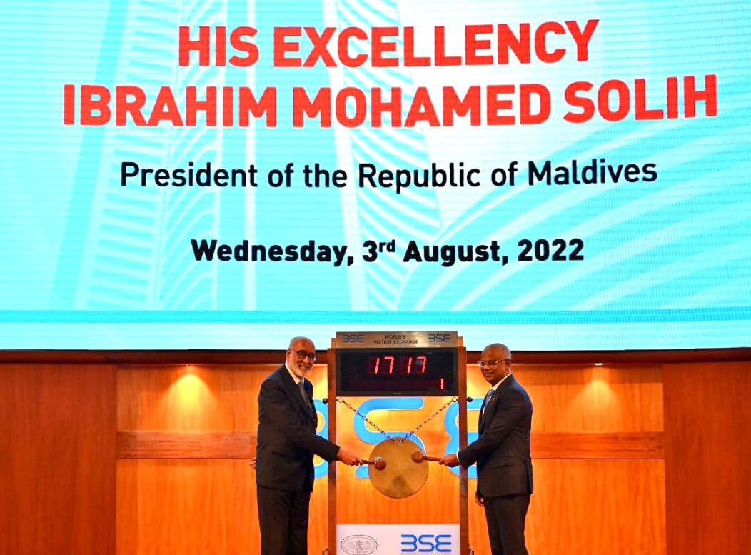ރައީސުލްޖުމްހޫރިއްޔާ އިބްރާހީމް މުހައްމަދު ސޯލިހު އިންޑިއާއަށް ކުރައްވަމުން ގެންދަވާ ދަތުރުފުޅުގެ ތެރެއިން މުމްބާއީއަށް ވަޑައިގެން ބޮމްބޭ ސްޓޮކް އެކްސްޗޭންޖަށް ޒިޔާރަތްކުރައްވައިފިއެވެ.