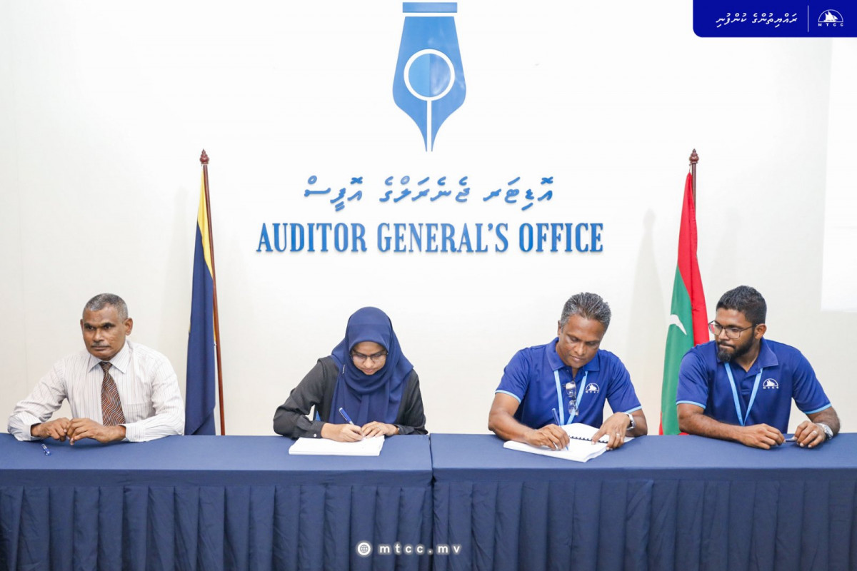 އޮޑިޓަރ ޖެނެރަލްގެ އޮފީހުގެ 6 ފަންގިފިލާގެ އައު އިމާރާތެއް ތަރައްގީކުރުމުގެ މަޝްރޫއުގެ އެއްބަސްވުމުގައި އެމްޓީސީސީއާއެކު އޮޑިޓަރ ޖެނެރަލްގެ އޮފީހުން ސޮއިކޮށްފިއެވެ.