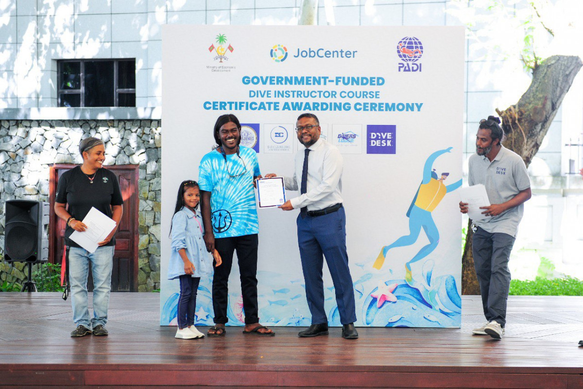 މިނިސްޓްރީ އޮފް އިކޮނޮމިކް ޑިވެލޮޕްމަންޓުން ތަންފީޒު ކުރަމުންދާމާ އަޕްސްކިލިން އެންޑް ޓްރެއިނިންގ ޕްރޮގްރާމްގެ ދަށުން އިންސްޓްރަކްޓަރ ޑިވެލޮޕްމަންޓް ކޯސް (އައިޑީސީ)ގެ ފުރަތަމަ ބެޗް ނިންމި 41 ބައިވެރިންނަށް ޕްރޮފެޝަނަލް އެސޯސިއޭޝަން އޮފް ޑައިވިން އިންސްޓްރަކްޓަރސް (ޕަޑީ)ގެ ސެޓްފިކެޓް ހަވާލުކޮށްފިއެވެ.
