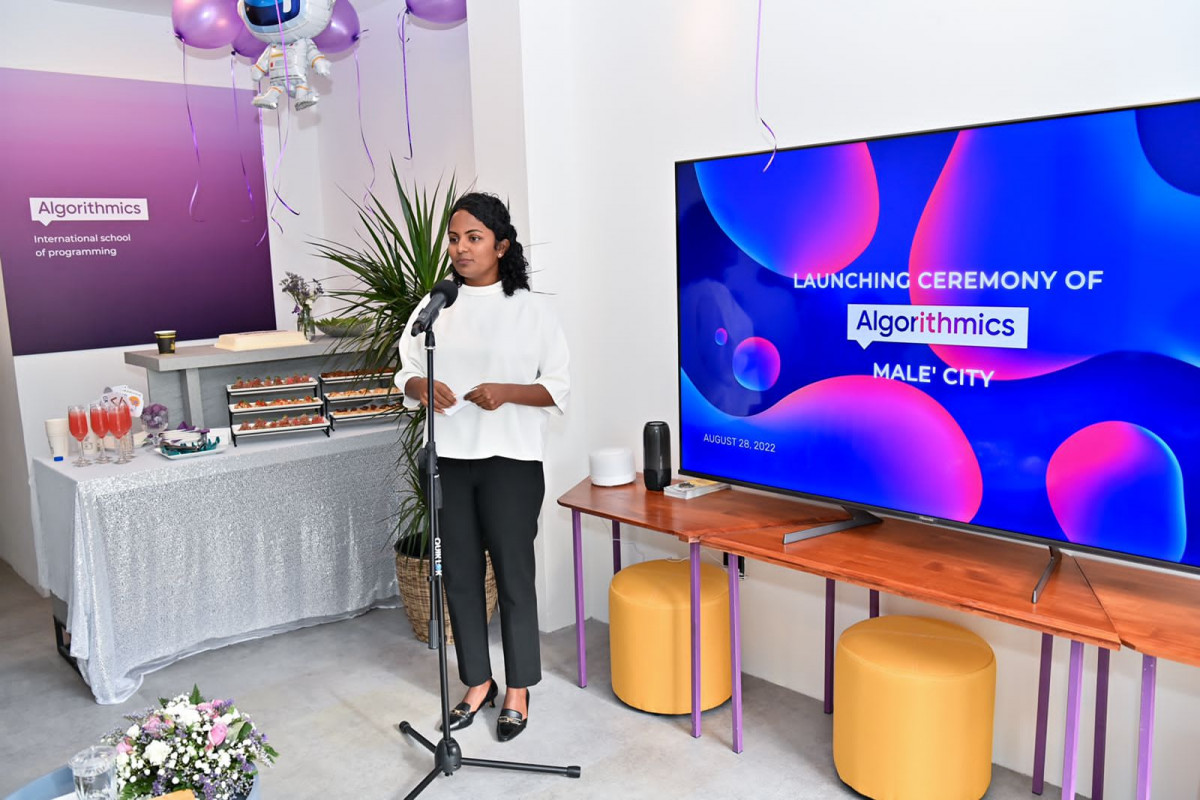 މިނިސްޓަރ ޝައުނާ މިހެން ވިދާޅުވީ އެލްގޮރިތްމިކްސް އިންޓަރނޭޝަނަލް ސްކޫލް އޮފް ޕްރޮގްރާމިންގ ހުޅުވުމުގެ ރަސްމިއްޔާތުގައި ވާހަކަ ދައްކަވަމުންނެވެ.