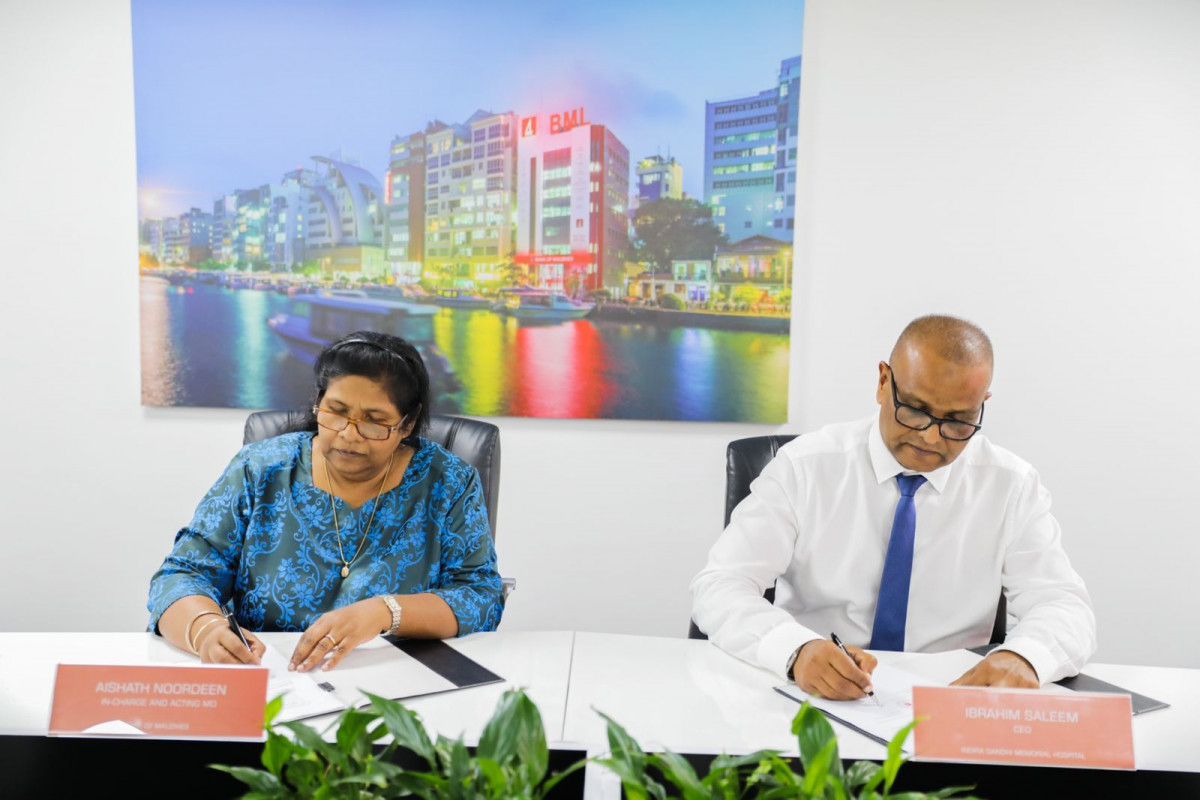ބޭންކް އޮފް މޯލްޑިވްސް (ބީއެމްއެލް) އިން އިންދިރާ ގާންދީ މެމޯރިއަލް ހޮސްޕިޓަލް (އައިޖީއެމްއެޗް) ގައި އޮންކޮލޮޖީއަށް ހާއްސަ ވޯޑެއް ގާއިމްކުރުމާ ގުޅޭ އެމްއޯޔޫއެއްގައި ސޮއިކޮށްފިއެވެ.