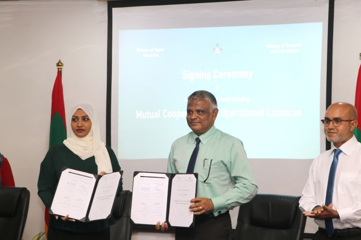 ޤައުމީ ސަނަދު ހާސިލް ކުރާފަރާތްތަކަށް ލައިސަންސްދިނުމަށް މިނިސްޓްރީ އޮފް ހަޔަރ އެޑިއުކޭޝަން އާއި މިނިސްޓްރީ އޮފް ޓްރާންސްޕޯޓް އެންޑް ސިވިލް އޭވިއޭޝަން އާއި ދެމެދު އެއްބަސްވުމެއްގައި ސޮއިކޮށްފިއެވެ.