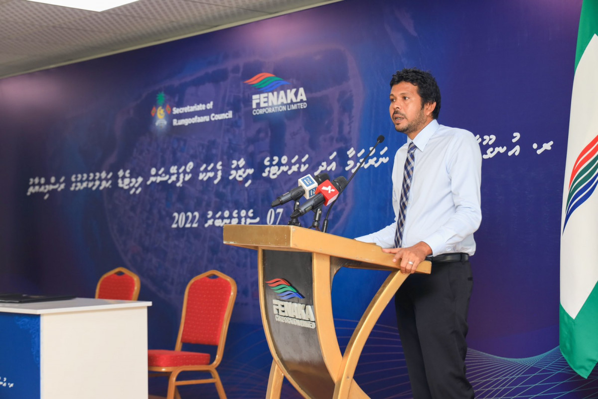 ރ. އުނގޫފާރުގެ ފެނާއި ނަރުދަމާ އަދި ކަރަންޓުގެ ނިޒާމު ފެނަކަ ކޯޕަރޭޝަނާއި ހަވާލުކުރުމަށް ބޭއްވި ރަސްމިއްޔާތުގައި އުނގޫފާރު ދާއިރާގެ މެންބަރު މުހައްމަދު ވަހީދު ވާހަކަ ދައްކަވަނީ