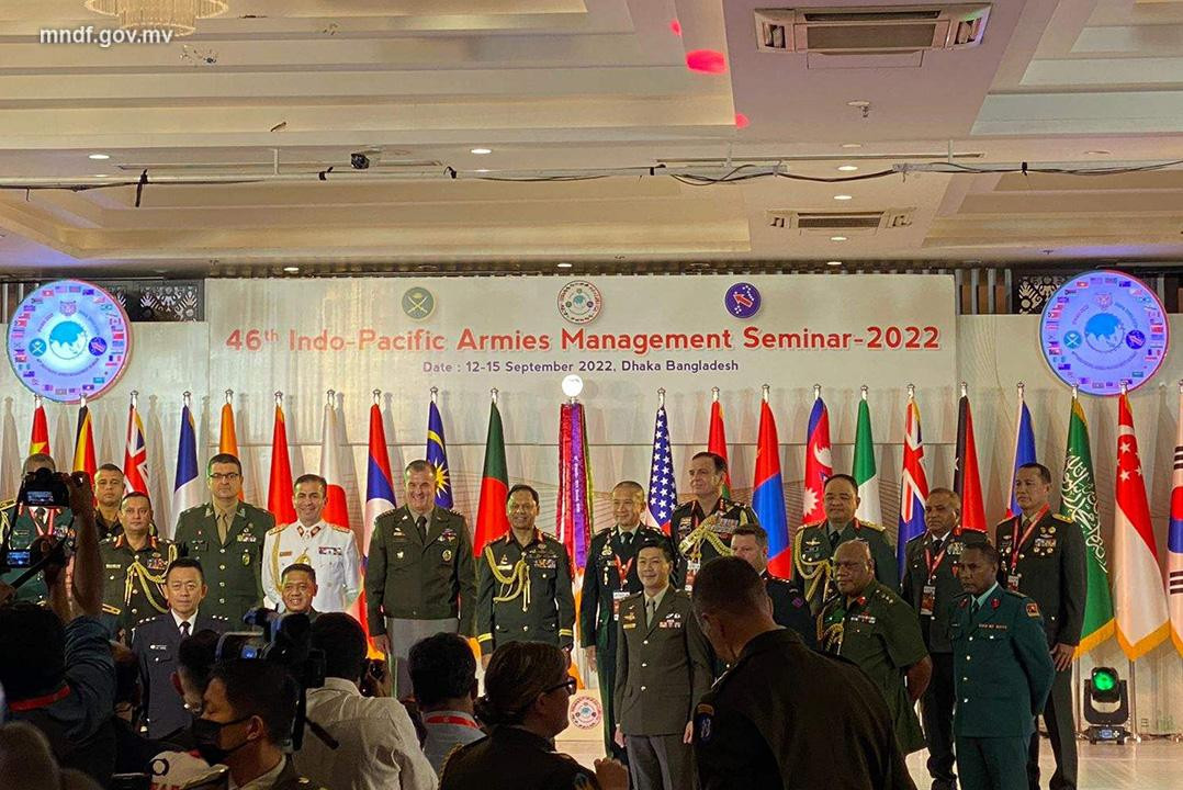 ބަންގްލަދޭޝްގެ ވެރިރަށް ޑާކާގައި ބޭއްވި 46 ވަނަ އިންޑޯ-ޕެސިފިކް އާމީސް މެނޭޖްމަންޓް ސެމިނަރ (އައިޕީއޭއެމްއެސް) ގައި ދިވެހި އަސްކަރިއްޔާގެ ވަފުދެއް ބައިވެރިވެއްޖެއެވެ.