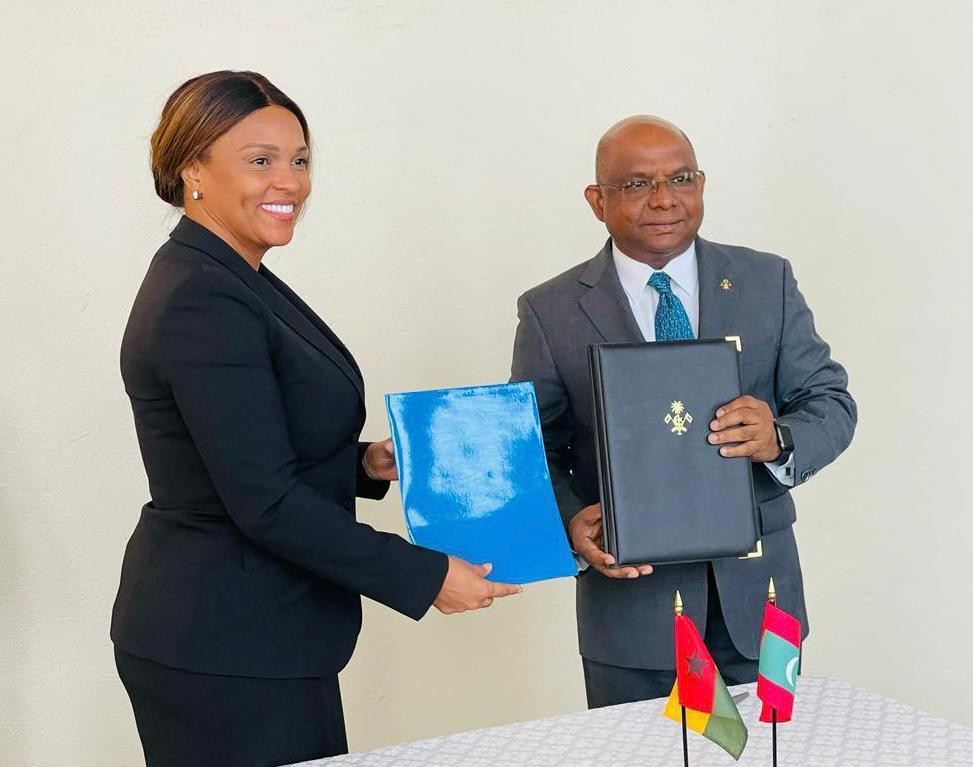 ސިޔާސީ ގުޅުން ގާއިމުކުރުމުގެ އެއްބަސްވުމުގައި ހޮނިހިރު ދުވަހު ސޮއިކޮށްފައެވެ. ރާއްޖޭގެ ފަރާތުން ފޮރިން މިނިސްޓަރ އަބްދުﷲ ޝާހިދު އެއްބަސްވުމުގައި ސޮއިކުރައްވާފައިވާއިރު ގިނީ ބިސާއުގެ ފަރާތުން ސޮއިކުރެއްވީ، އިންޓަރނޭޝަނަލް ކޯޕަރޭޝަން އެންޑް ކޮމިއުނިޓީސްގެ ފޮރިން މިނިސްޓަރ ސުޒީ ކާރލާ ބަރްބޯސާއެވެ.
