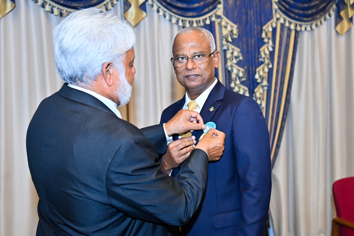 ބައިނަލްއަޤްވާމީ އަހިންސަ ދުވަހާއި ގުޅިގެން މިނިސްޓްރީ އޮފް ހޯމް އެފެއާޒްގެ ފަރާތުން ރައީސުލްޖުމްހޫރިއްޔާއަށް ވަނީ ދުވަހާގުޅޭ ބެޖެއް ހަދިޔާކުރައްވާފައެވެ.