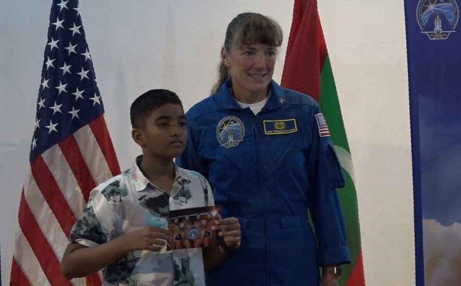 ނާސާގެ ކުރީގެ އެސްޓްރޮނޯޓެއްކަމަށްވާ ހައިޑީ މެރީ ސްޓެފަނިޝީން ޕައިޕާރއާއެކު "މީޓް އެންޑް ގްރީޓް" ބާއްވައިފިއެވެ.