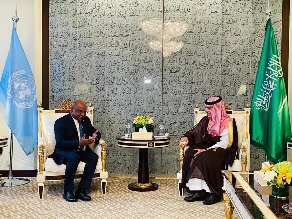 ފޮރިން މިނިސްޓަރު އަބްދުﷲ ޝާހިދު ސައުދީގެ އިސް ބޭފުޅަކާ ބައްދަލު ކުރައްވަނީ