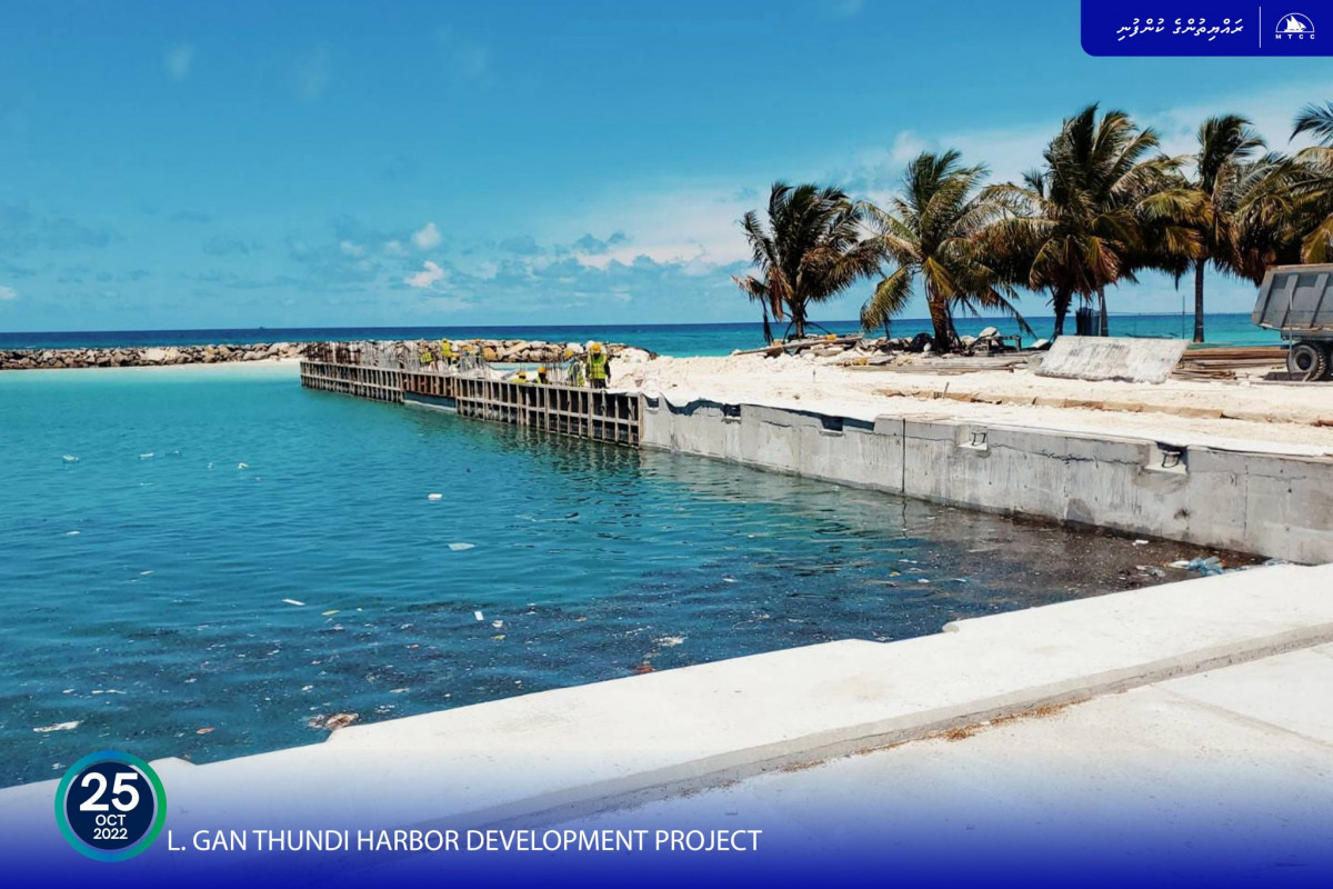 The ‘Thundi’ harbor development project in Gan island of Laamu atoll, is well underway.
